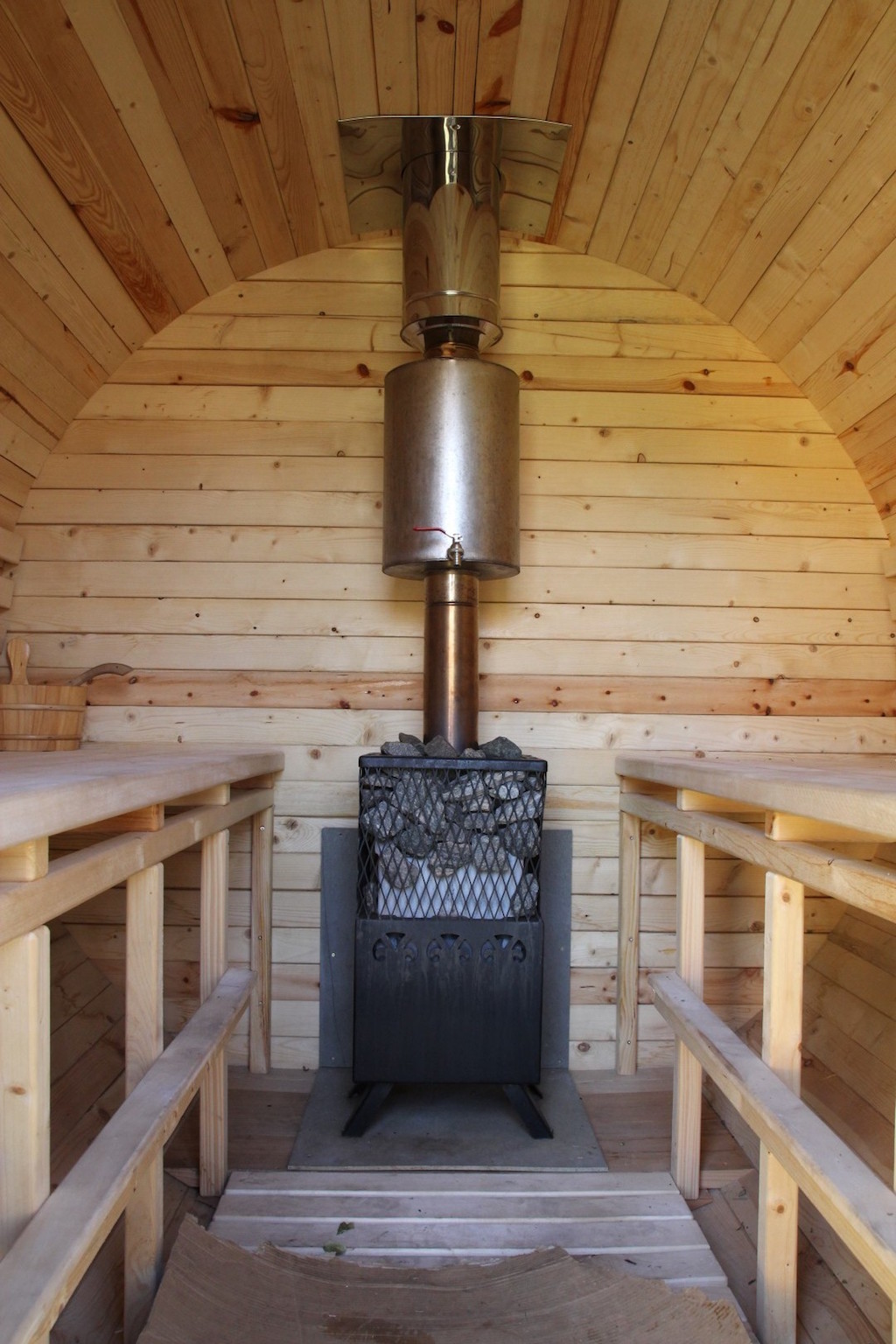 Sauna diameter 2.25 m. Sauna components include: